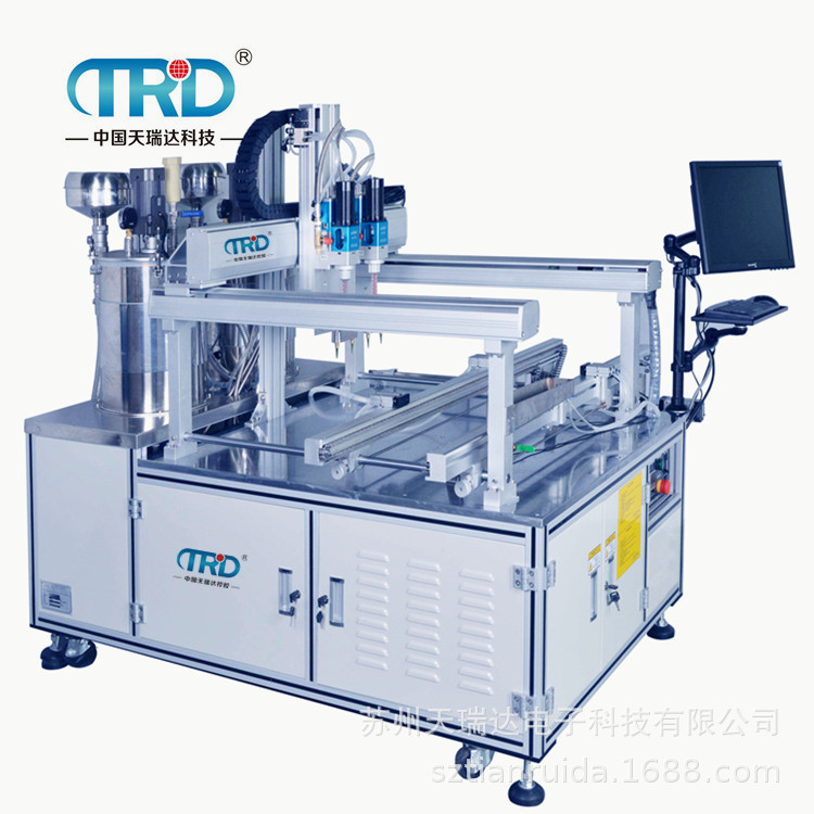此外小限度的自動點膠機運用必然對產品工件的精準定位等明確提出了高些的規定,反映在點膠機商品上多配用有3軸機械臂,用于相互配合完成高精密工作,而對大膠量運用的灌膠機,這種作用模塊則歸屬于選裝項。