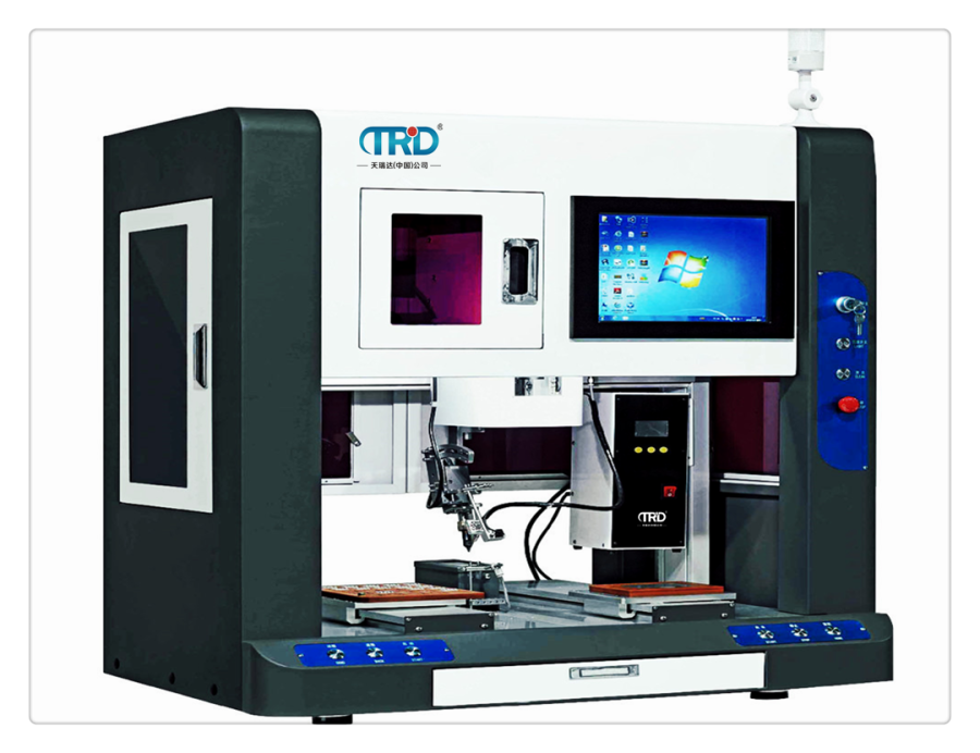 TH-5410H雙平臺(tái)自動(dòng)焊錫機(jī)可對(duì)各種工件進(jìn)行高速拖焊,點(diǎn)焊,斜線焊接等。解決了人工重復(fù)性焊接動(dòng)作出現(xiàn)的焊點(diǎn)不均勻、虛焊等現(xiàn)象。我們的優(yōu)勢(shì)是焊點(diǎn)一致性好,品質(zhì)穩(wěn)定。自動(dòng)焊錫機(jī)操作簡(jiǎn)單,生產(chǎn)效率高、焊接質(zhì)量好、環(huán)保又節(jié)能、初學(xué)者也能達(dá)到熟練工人的焊接效果。本機(jī)采用簡(jiǎn)易快速地輸入焊錫程序,其軟件并具有強(qiáng)大的編輯功能,可輕易、快速的完成程序教導(dǎo)。