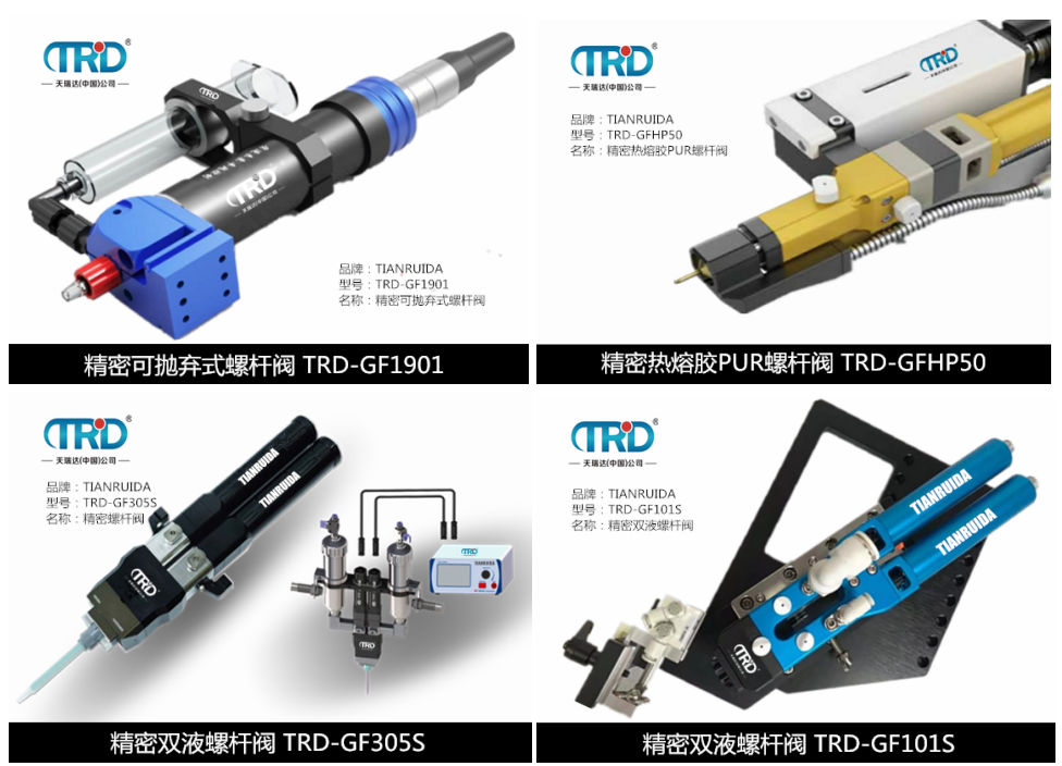 產(chǎn)品介紹TRD-GF101S精密雙液螺桿閥為精密、可重復(fù)性點涂而設(shè)計,通過結(jié)合螺旋供料技術(shù),點膠時間、針筒壓力以及螺桿速度的精確控制,確保穩(wěn)定一致的粘結(jié),密封等效果。精確重復(fù)的點膠輸出、精密耐用的供料螺桿,可代替人工特定的點膠作業(yè),實現(xiàn)機(jī)械自動化的生產(chǎn)。