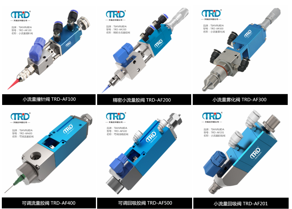 產品介紹TRD-AF100小流量撞針膠閥優選304不銹鋼+鋁合金,精工鑄造而成結構質密,不漏氣,不漏膠,耐磨耐腐蝕,使用壽命長。適用UV膠、白乳膠、潤滑脂、油墨等單組份液體,電子行業、照明行業、汽車行業、工業電氣、太陽能光伏等行業